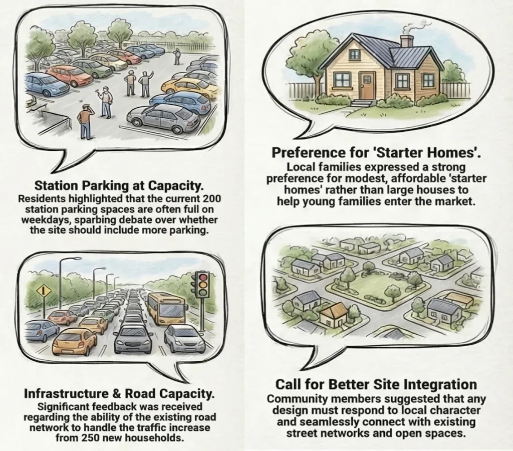 Redeveloping the long-vacant land beside the train station represents an opportunity to strengthen the suburb’s transport connectivity while adding new housing options close to public transport.
