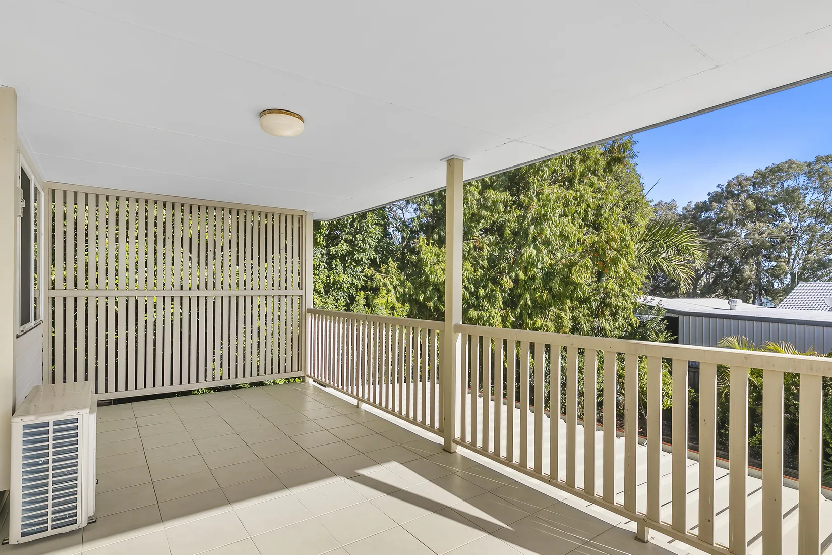 Large covered alfresco area with fan