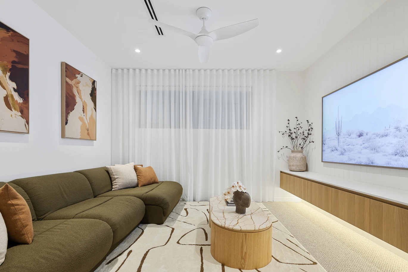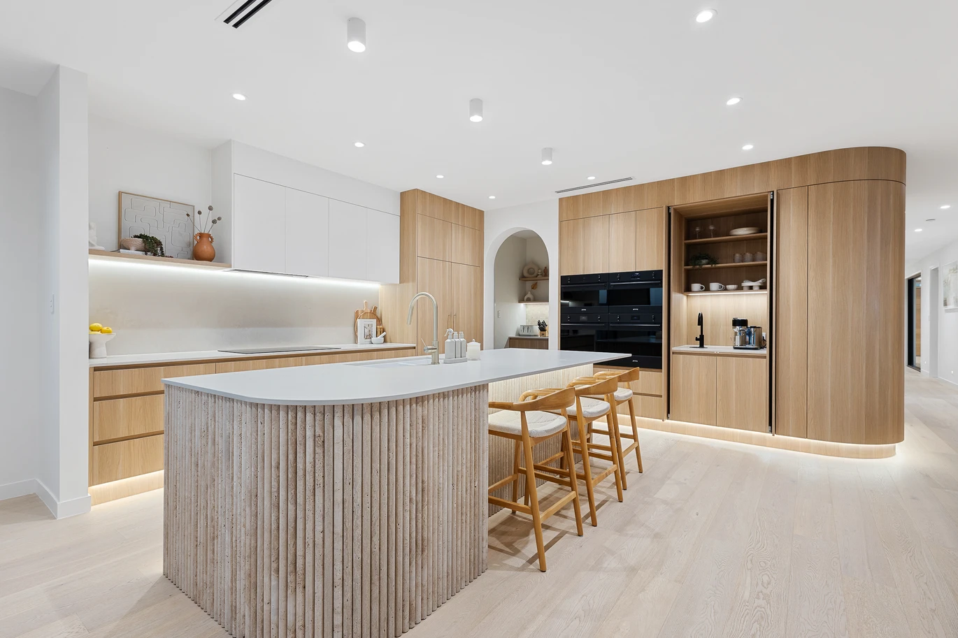 From the battens that frame lake views while maintaining privacy, to the travertine and stone finishes that enhance texture and tone, every element of this home has been purposefully designed for beauty, comfort, and connection to nature.