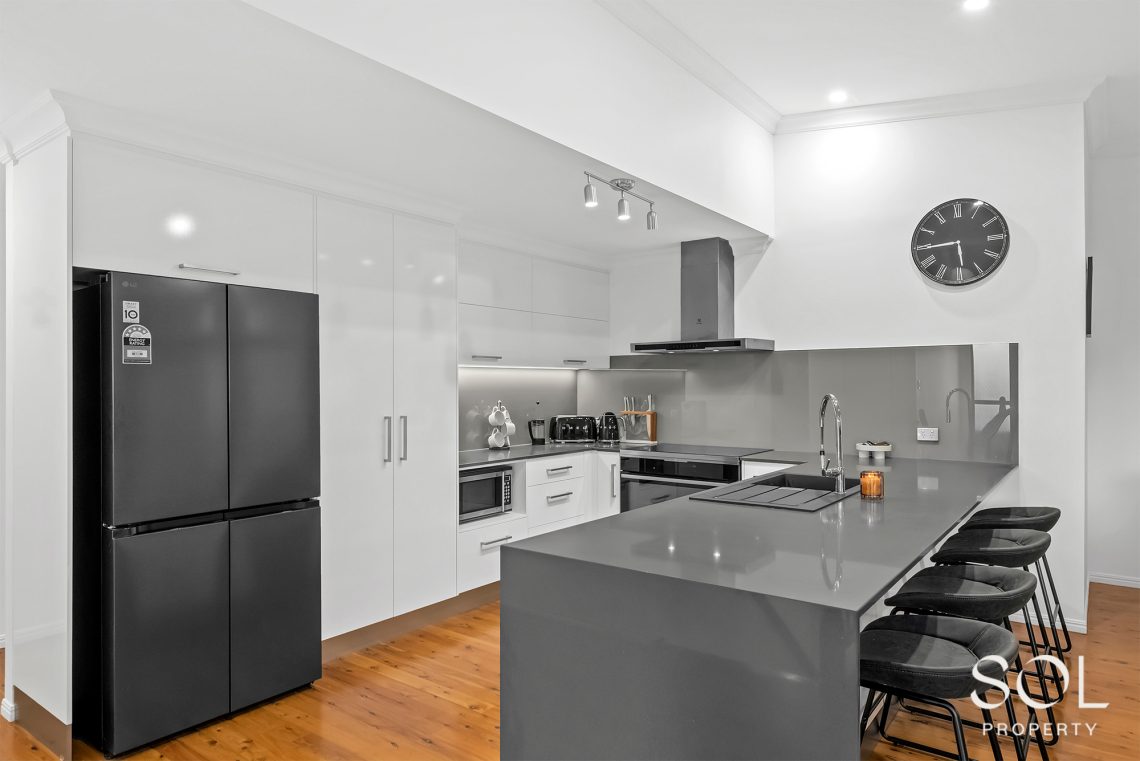 The generous open-plan living and dining area captures plenty of natural light and connects seamlessly to a private entertainer’s deck—ideal for weekend barbecues or unwinding with family and friends. At the heart of the home, the modern kitchen provides excellent bench space, abundant storage, and a breakfast bar that brings everyone together.
