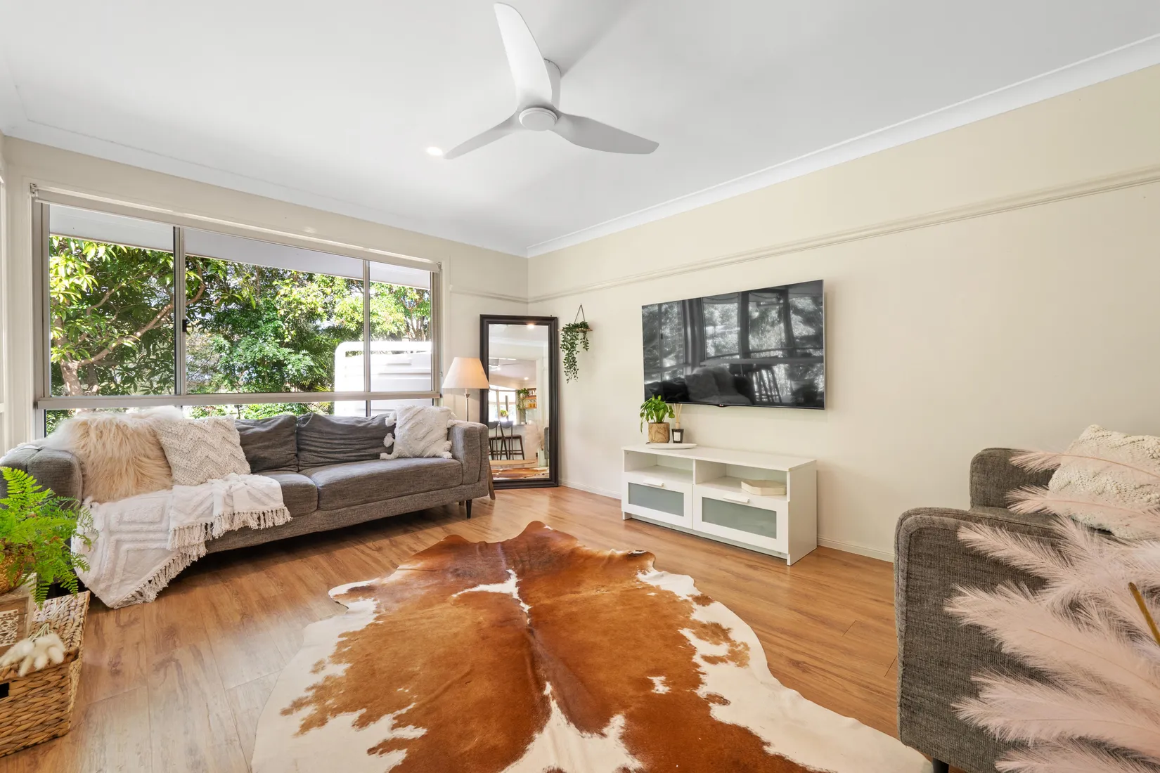 - Roller blinds, ceiling fan & ornate picture rail