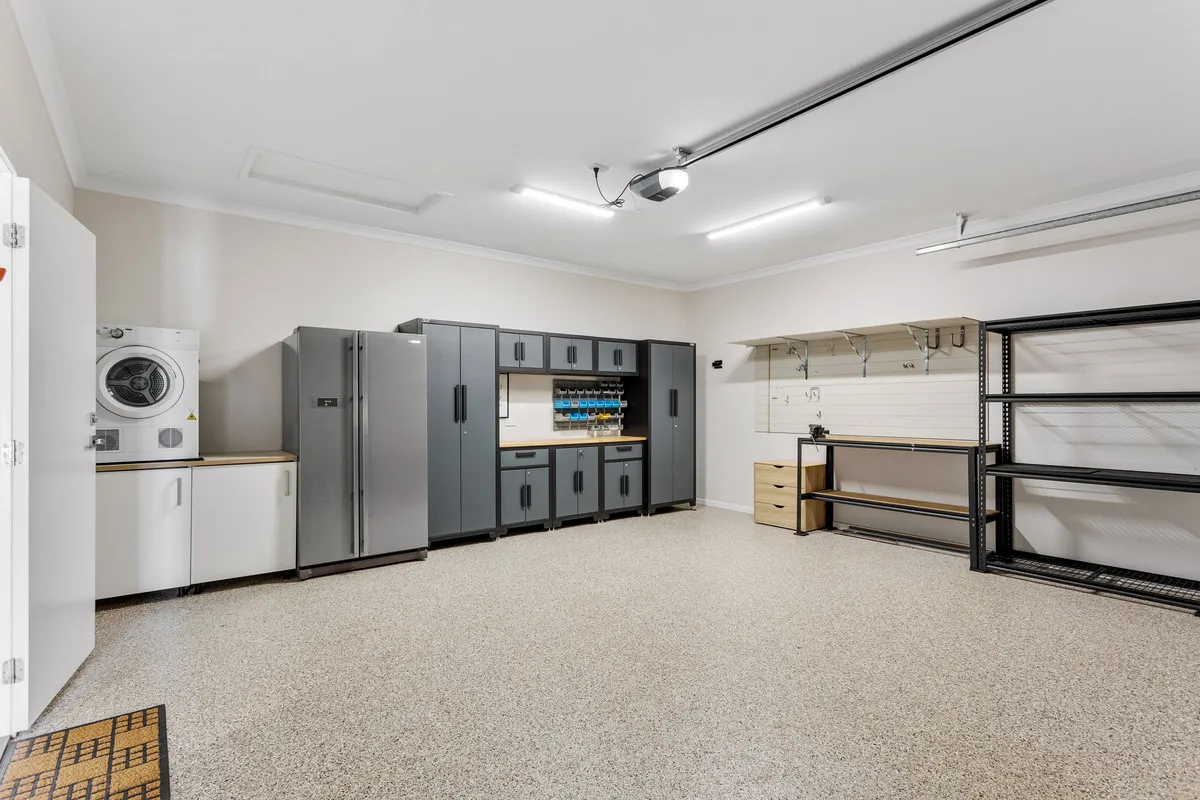 The heart of the home is the gourmet kitchen — a showpiece of Caesarstone waterfall benches, a walk-in pantry, and seamless flow into open-plan living and dining. Entertain in style as sliding doors open to the alfresco, enhanced with Franklyn all-weather blinds, inviting year-round gatherings in absolute comfort.