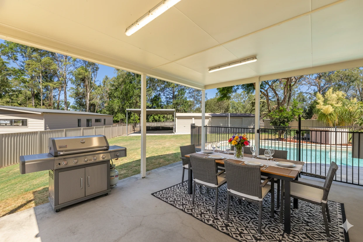 The exterior of this property is a dream for hobbyists, tradies, and entertainers alike. You can