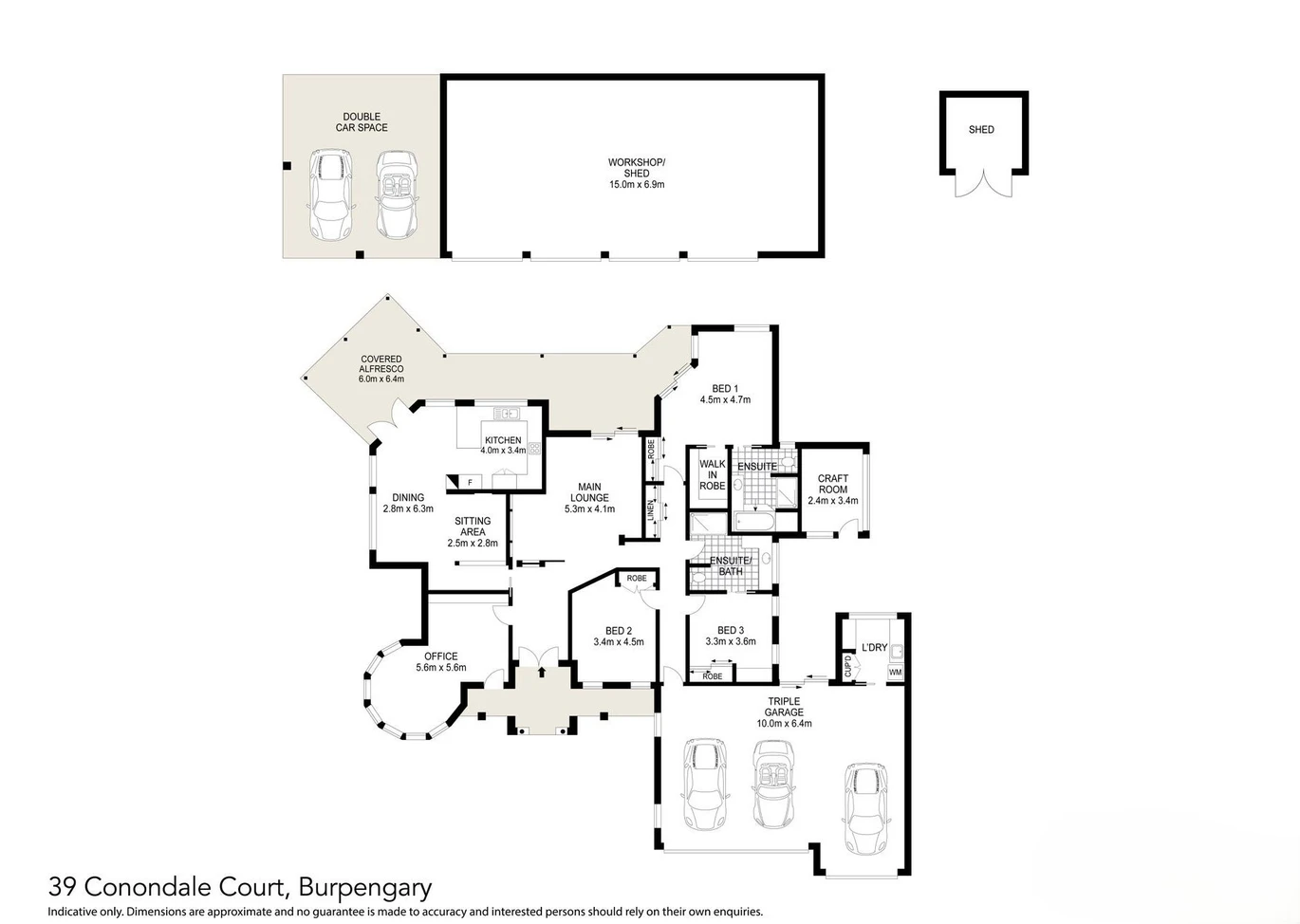 for the caravan, boat, or horse float. In addition to the extensive shedding, the home provides a