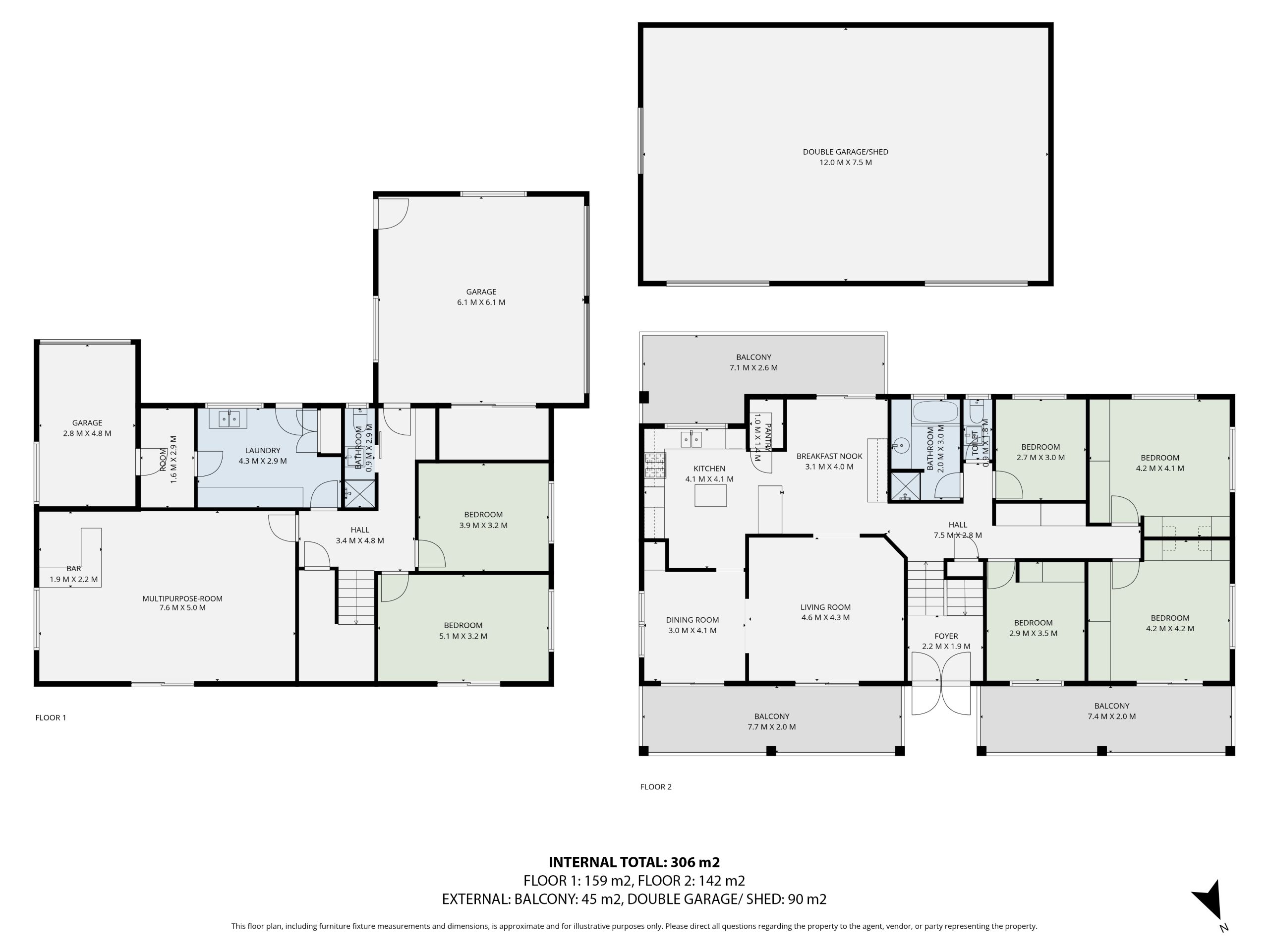 • Massive 12m x 7.5m double garage/shed