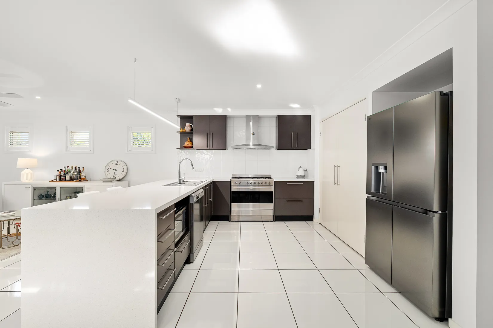 The well-equipped kitchen is a chef's delight, complete with stone bench, breakfast bar, plenty of storage and premium 900mm SMEG stove & oven - perfect for entertaining or family meals. A large, dedicated study provides a quiet space for working from home, while the layout offers multiple living zones for flexibility and privacy.