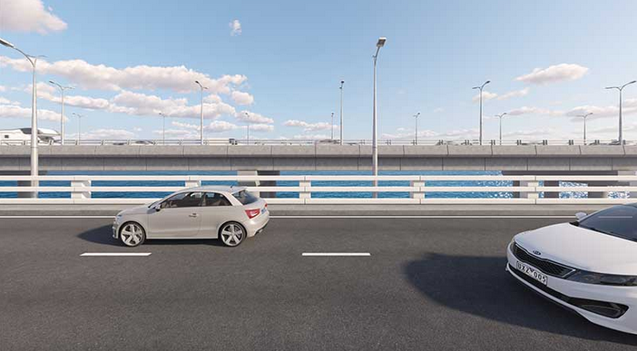 The concept design intentionally retains the existing bridge to optimise cost, reduce environmental footprint and align with the long-term four-lane corridor vision.