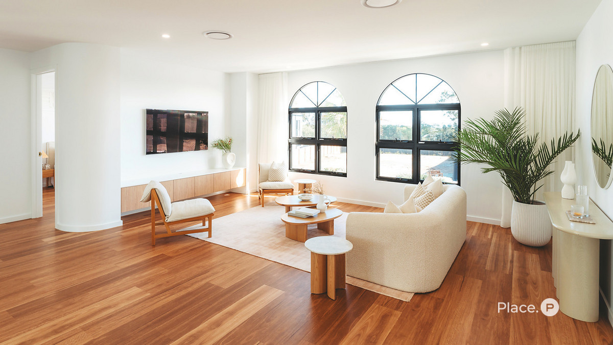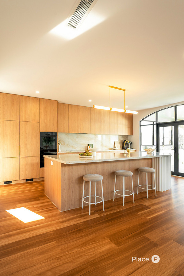 Newly built by NXTgen Construction, the home unfolds with movement and intention. A soaring 6.1-metre void draws your eye upward, while 3-metre ceilings and sweeping glazing frame uninterrupted lake views from nearly every living space. Positioned at one of the widest points of Newport Lake, the outlook feels expansive, private and quietly powerful.