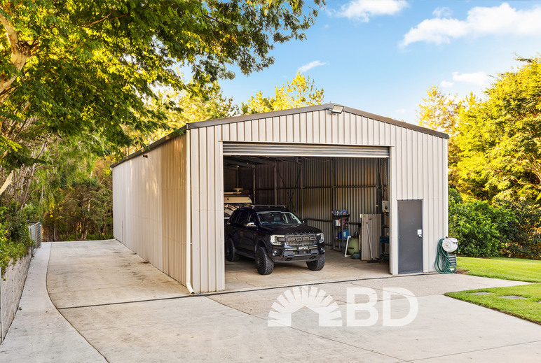 • Front Shed: 18m x 8m with single electric roller door with a door clearance height of 3.45m and a 8m x 3m mezzanine