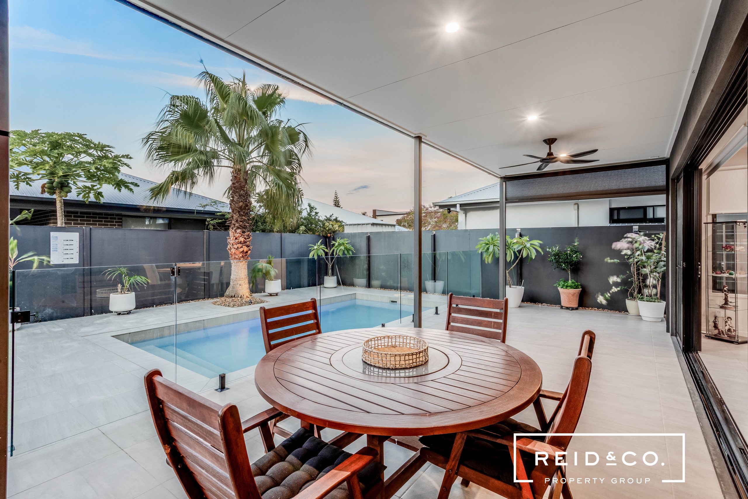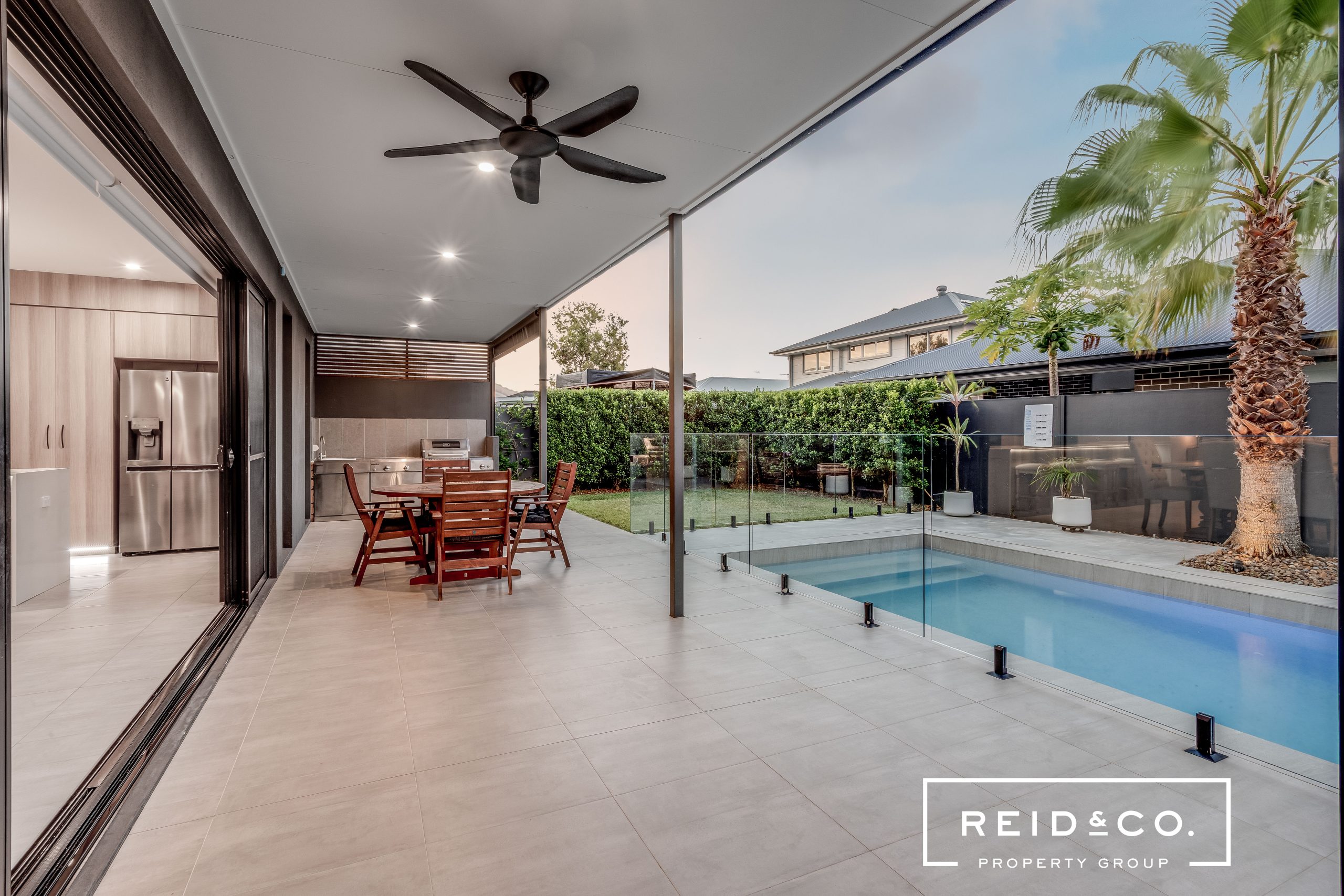 Step outside to your own private oasis featuring a beautifully landscaped backyard with feature palm tree and lush greenery. The outdoor space boasts a sparkling swimming pool, ideal for summer days spent soaking up the sun or hosting poolside family events at your outdoor kitchen.