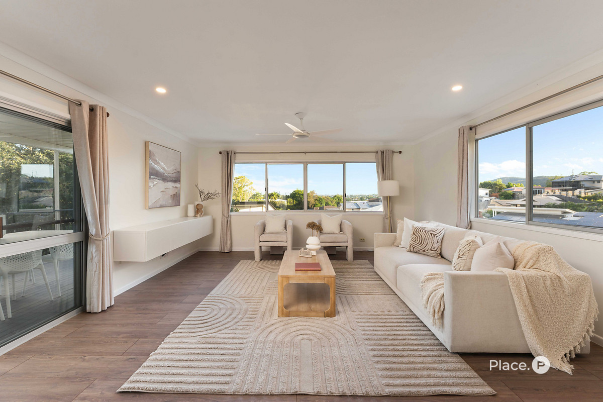Positioned high on one of Arana Hills’ most elevated and tightly held locations, this impressive family home enjoys sweeping, uninterrupted views of the Brisbane City skyline and offers a lifestyle rarely found in the area. From the moment you arrive, the resort-style swimming pool and landscaped surrounds create an immediate sense of relaxation and escape. Inside, stylish modern renovations paired with subtle mid-century design elements deliver a warm, contemporary home perfectly suited to families, entertainers and those seeking future flexibility.