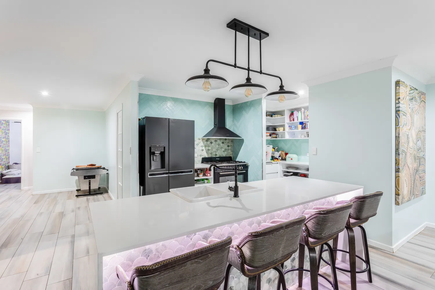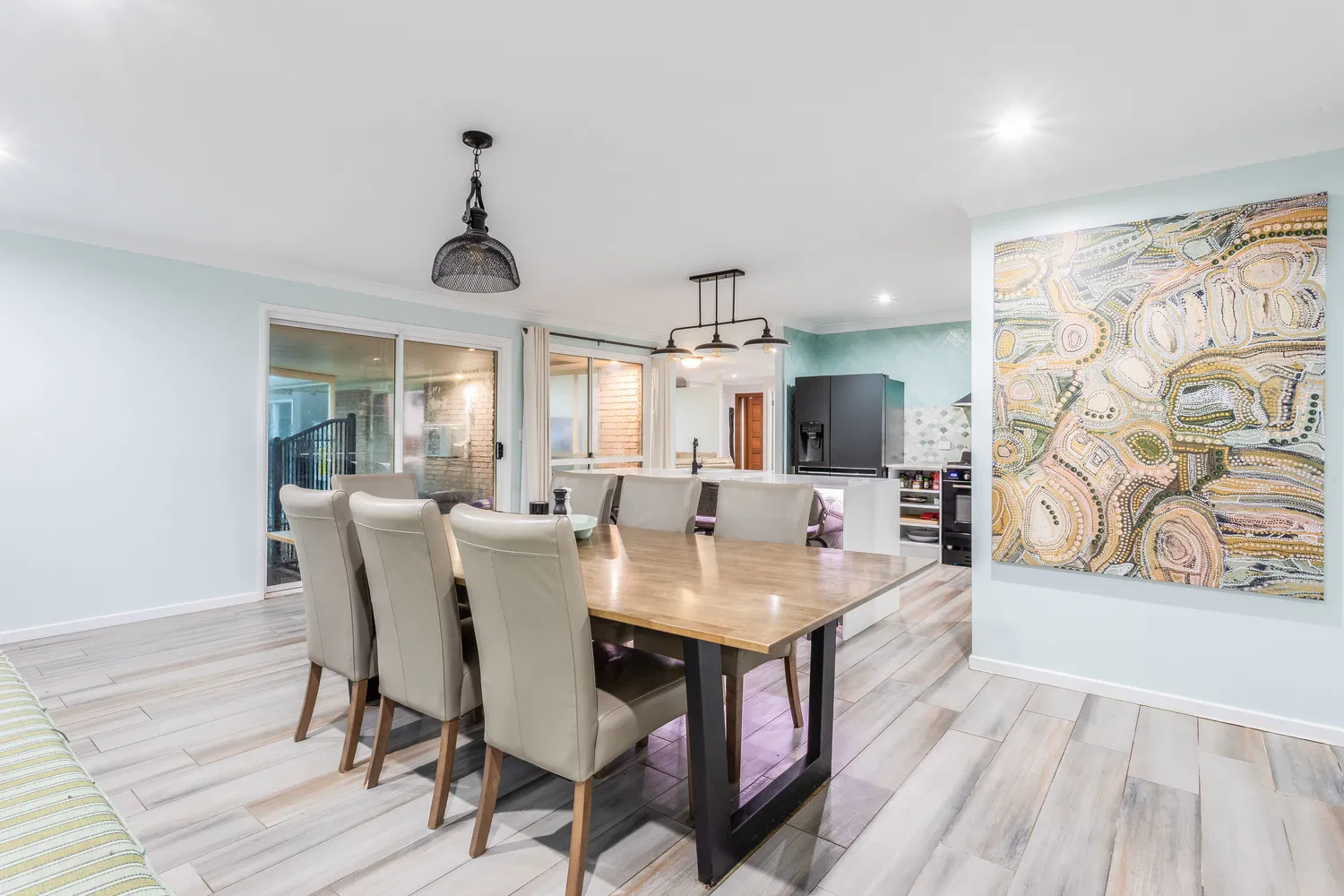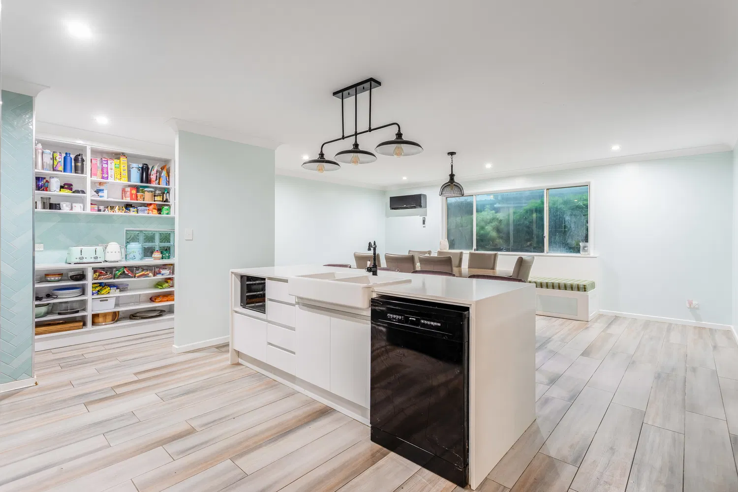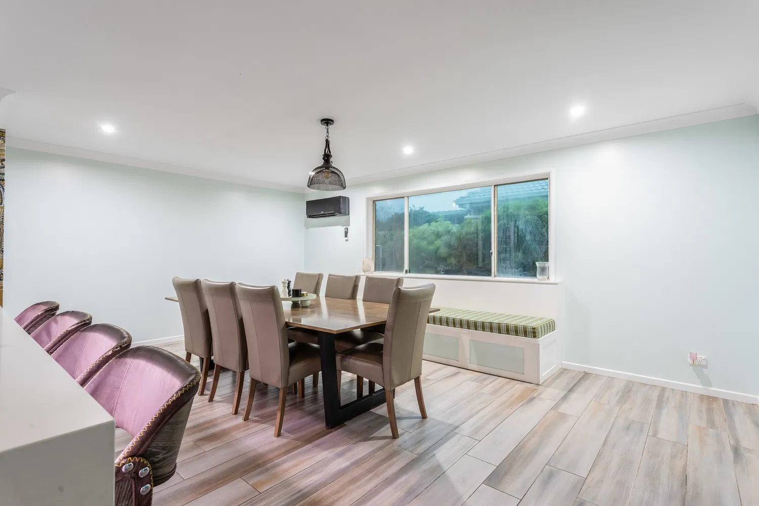 Inside, you’ll find separate living and dining areas, enhanced by air-conditioning throughout for year-round comfort. At the heart of the home is a well-designed kitchen complete with a butler’s pantry, ample storage, and seamless connection to the entertaining space.