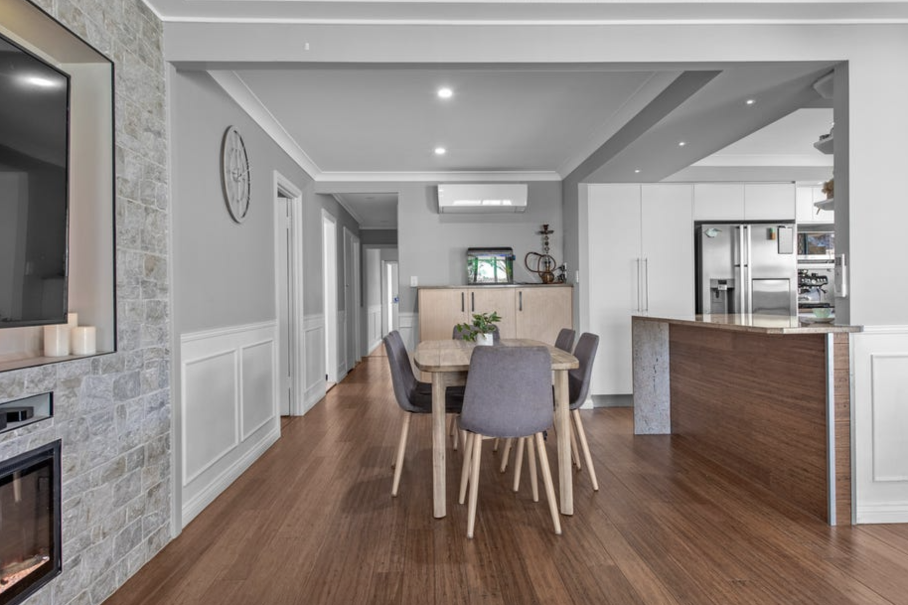 Airconditioned light filled open plan kitchen, living & dining