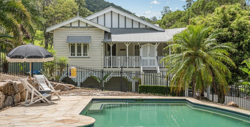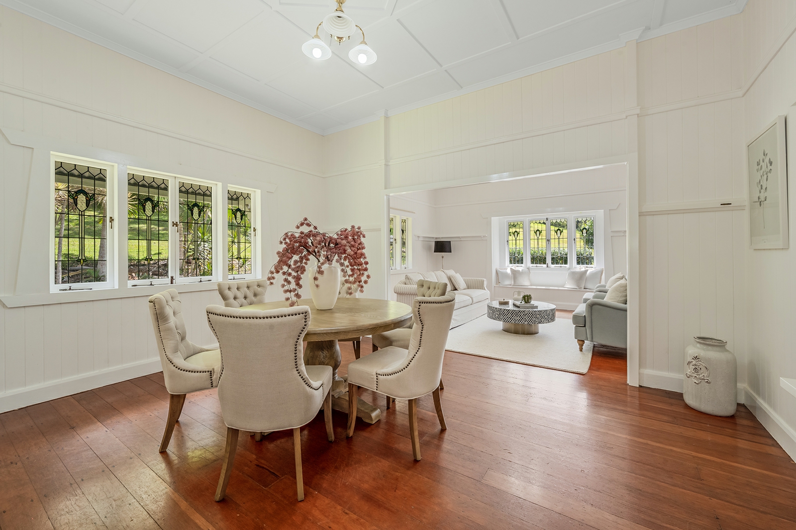 Privately positioned toward the end of a peaceful cul-de-sac, this circa 1925 Queenslander captures the romance of classic architecture with the freedom of acreage living. Showcasing high ornate ceilings, VJ walls, stained glass windows and extra-wide hardwood floors, the home features a wrap around veranda that frames sweeping vistas and captures cool breezes.