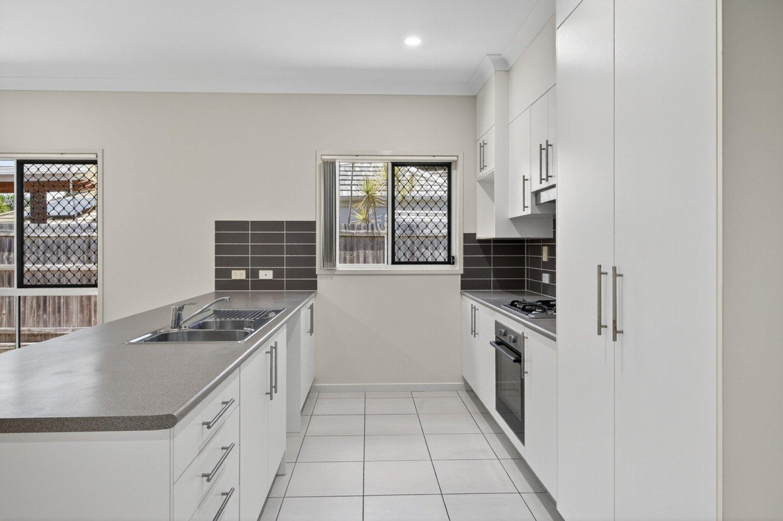 - Kitchen has 4 burner gas cook top, electric oven, space for dishwasher & microwave, double sink, large pantry & breakfast bar.