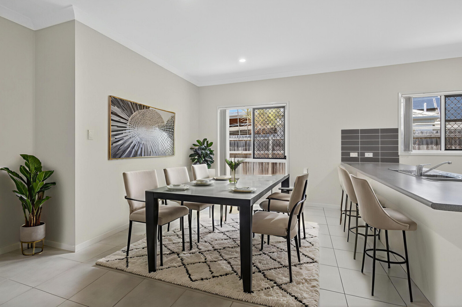 - Open plan kitchen/living/dining flows out to covered rear alfresco