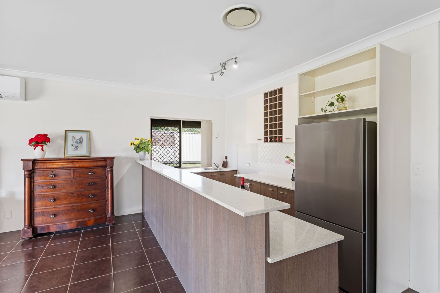 · Kitchen: gas cooktop, wall oven, new dishwasher, breakfast bar, ample storage and bench space