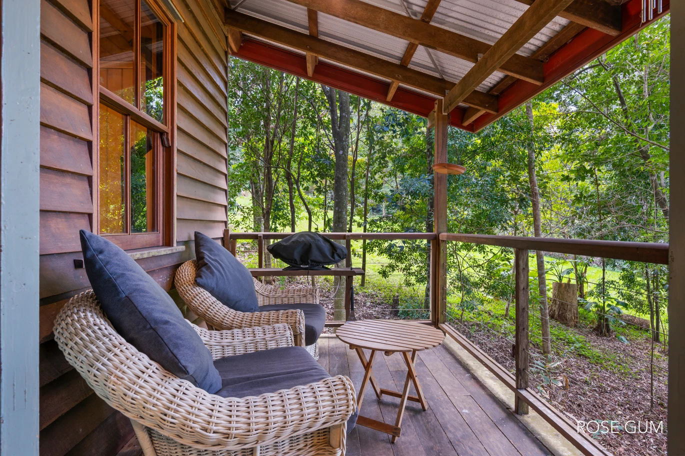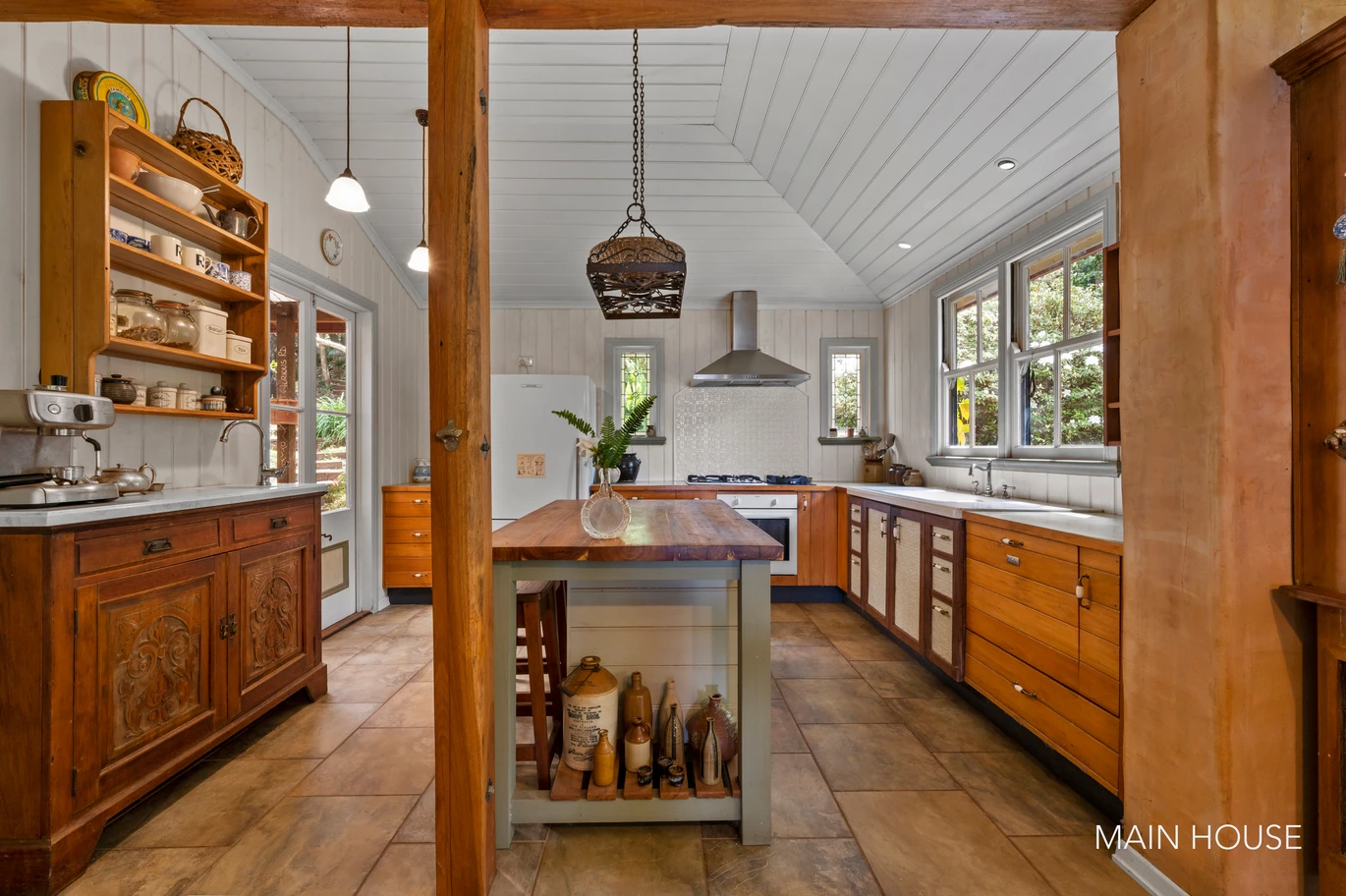 The architecturally designed, character-filled main house has been built with eco principles in mind, including extensive use of timber milled from the property. It features a large veranda, spacious bedrooms, two distinct office areas, beautiful timber flooring and beams, stained glass windows, under-floor heating. The living areas are spacious, with the kitchen, dining room, lounge (and wine cellar!) designed for entertaining, either on the veranda, or by the fireplace on chilly mountain winter nights.