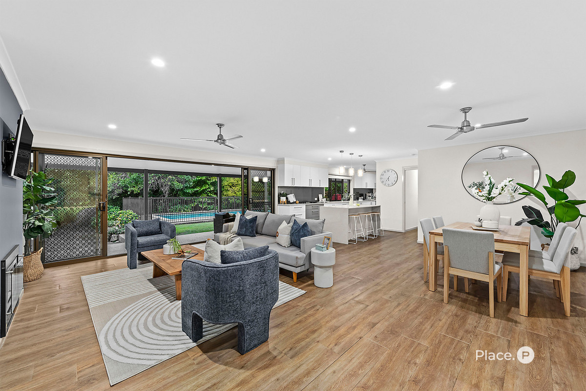Presiding over a beautifully elevated and private acreage parcel, this immaculate residence delivers a lifestyle of relaxed sophistication, where space, serenity and everyday comfort come together effortlessly. Set against a lush natural backdrop, the thoughtfully designed single-level home offers a functional family layout that seamlessly connects to inviting outdoor entertaining and resort-inspired surrounds.