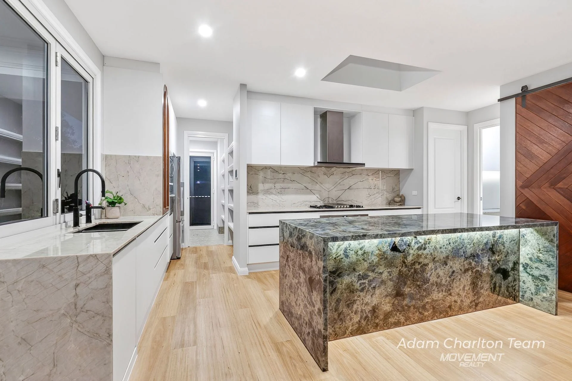 - Granite benchtops throughout, featuring an exquisite Labradorite stone island in the kitchen