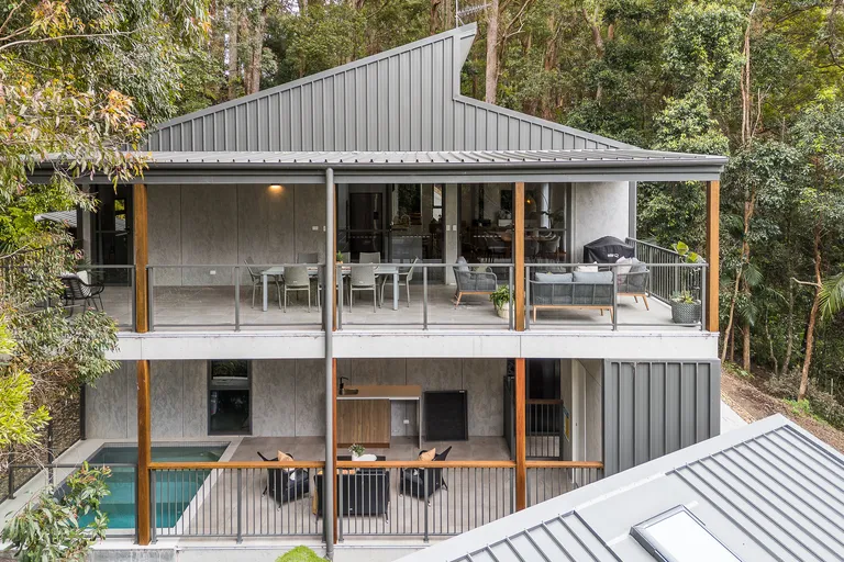 Cleverly crafted to embrace its tranquil bush surrounds, this architectural retreat and guest residence delivers a superb haven of versatility, tranquillity and privacy. The home is orientated to take full advantage of natural light, fresh breezes and beautiful outlooks over the trees, plus it offers a stylish entertainer's home of blissful seclusion surrounded by nature.
