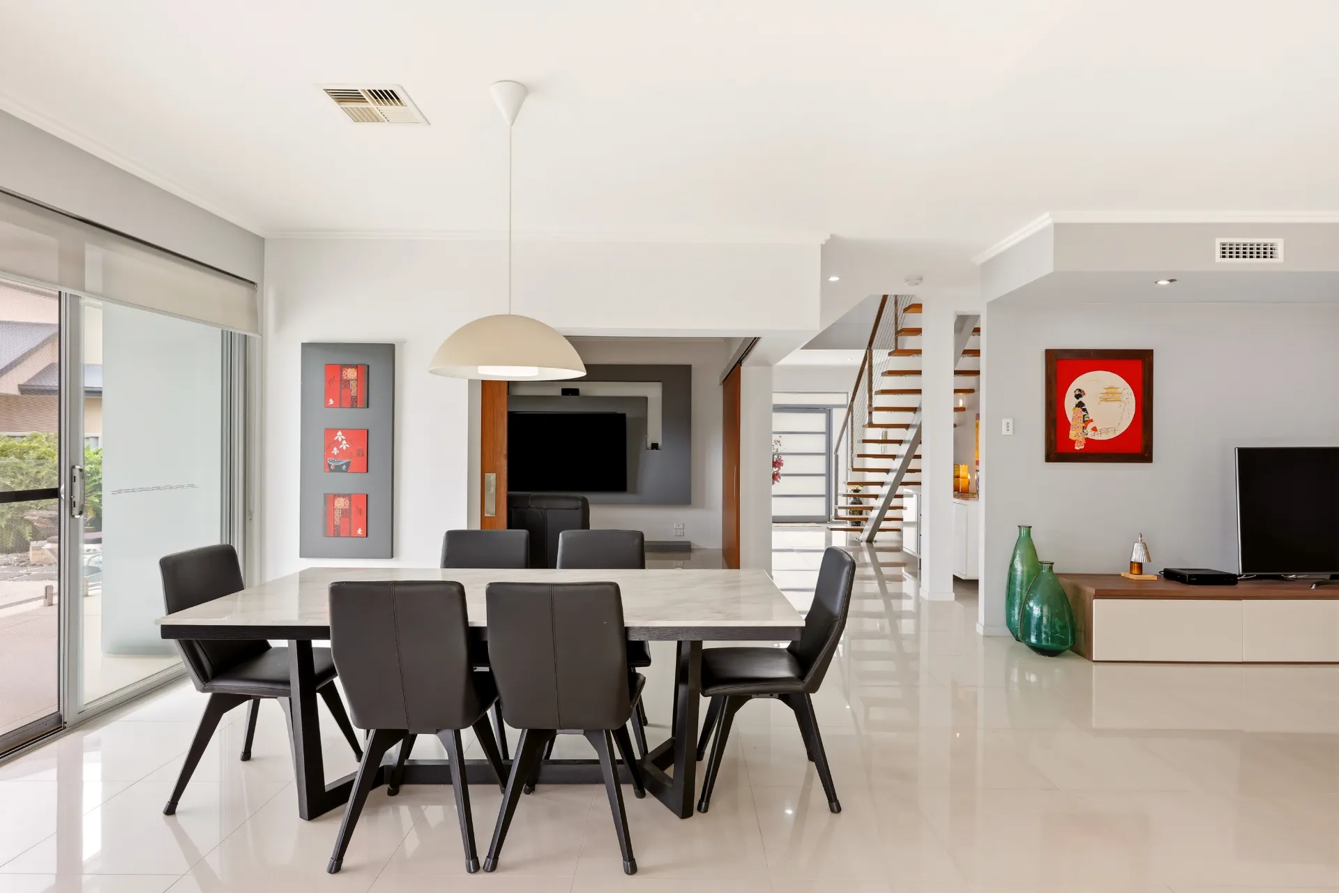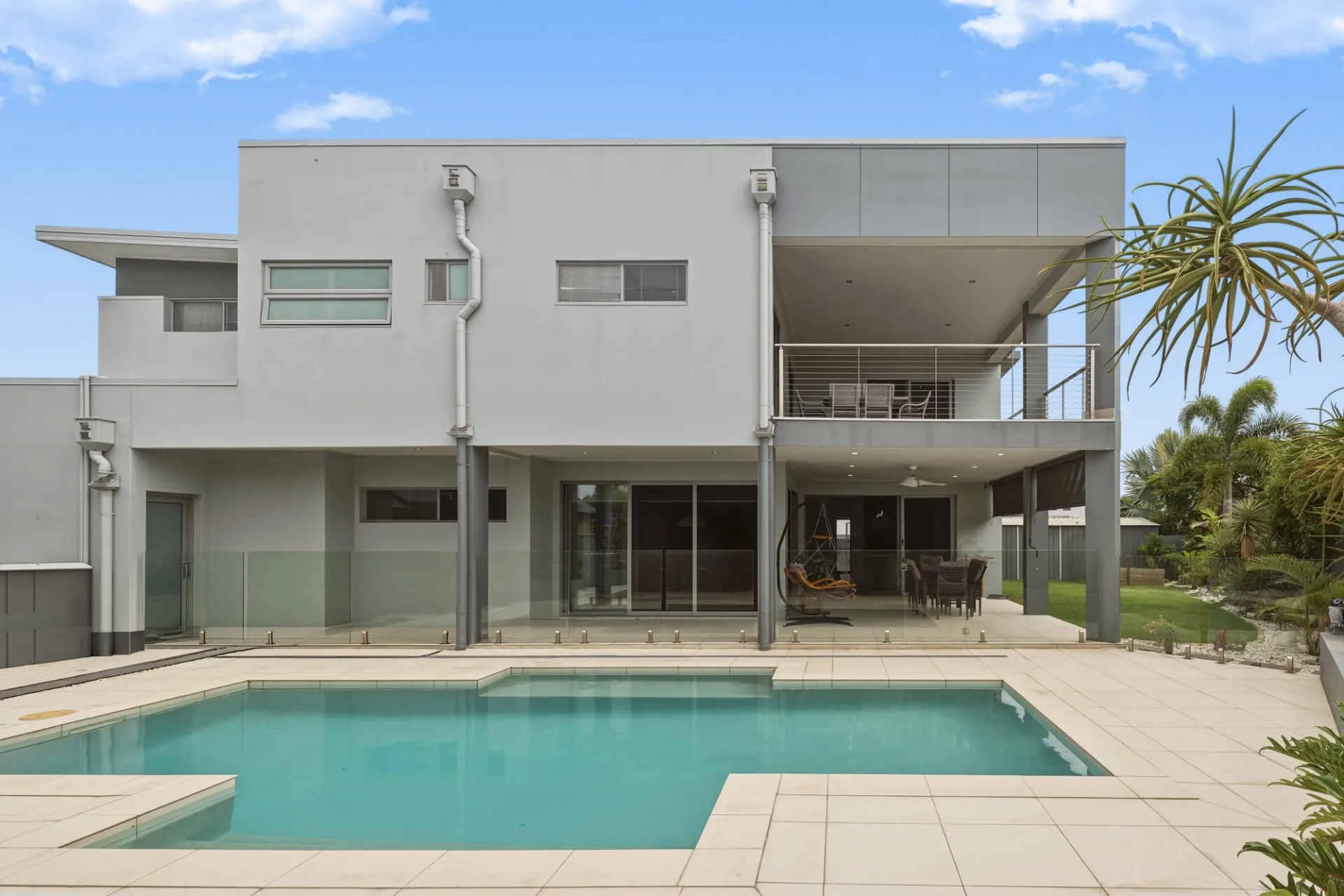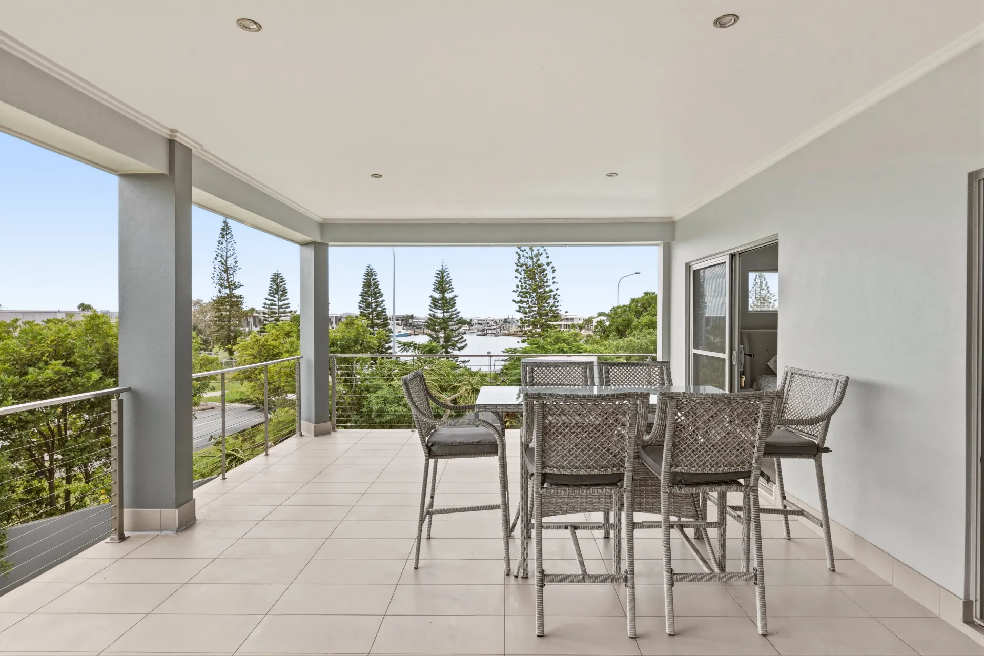 Step inside to soaring 9-foot ceilings, gleaming tiled floors, and a light-filled interior that immediately conveys quality. Multiple living and dining zones offer flexibility for every stage of family life-from relaxed everyday living to sophisticated entertaining. Downstairs, open-plan spaces connect seamlessly, while a dedicated media room provides the ultimate cinematic experience. Upstairs, a generous lounge opens to a covered balcony where you can unwind and enjoy sweeping canal and sunset vistas.