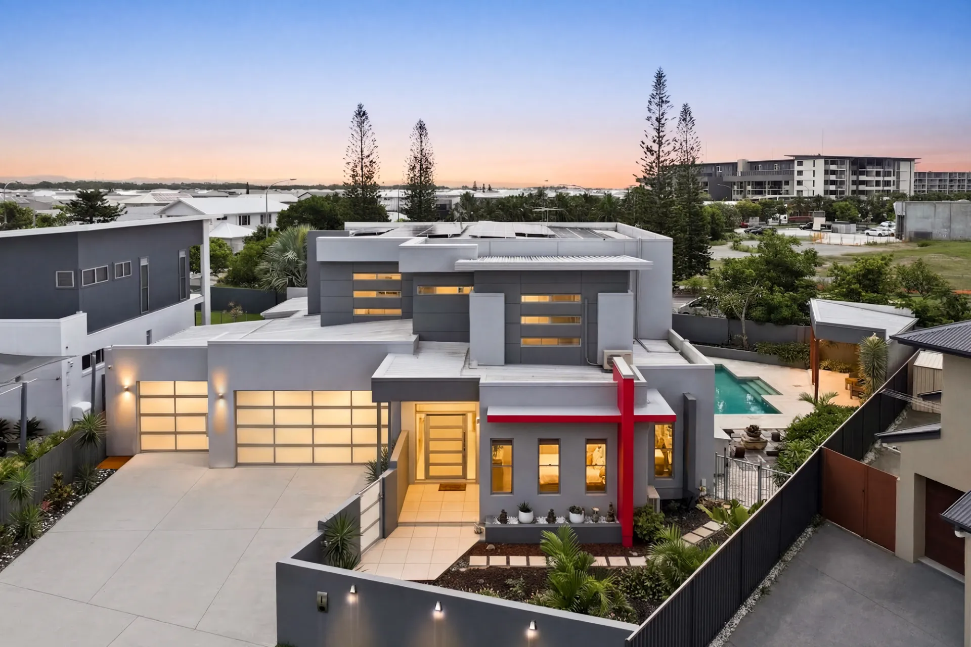 Privately positioned in a prestigious Newport cul-de-sac, this remarkable residence delivers an exceptional standard of living with grand proportions, refined finishes, and captivating water and sunset views. Designed for large families and effortless entertaining, the home combines elegance, comfort, and functionality across two expansive levels.