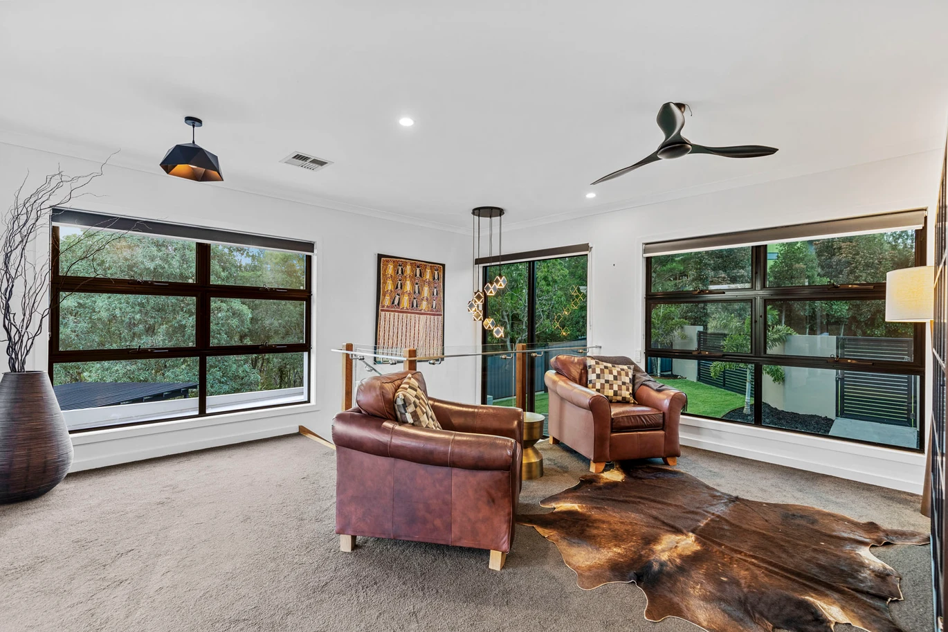 You will be drawn outdoors in every direction but not before admiring the gourmet kitchen with bronze mirrored splashback, induction cooktop and 600mm oven, 40mm waterfall stone benchtops and island and butlers pantry offering appliance cupboards for ease.