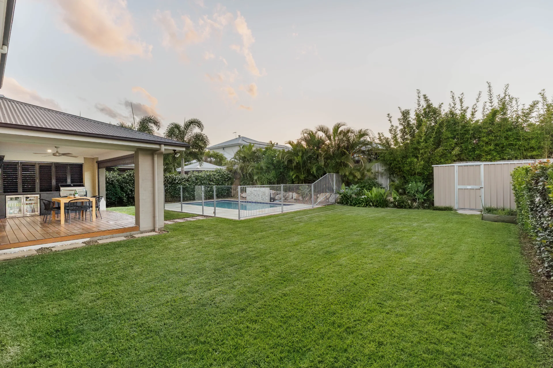 The outdoor area is a seamless extension of the home, featuring a generous covered and decked alfresco complete with built-in BBQ, overlooking the pristine Magna Pool. Surrounded by fully landscaped gardens and generous yard space, this private retreat is perfect for relaxing, hosting gatherings and embracing the best of Queensland living.