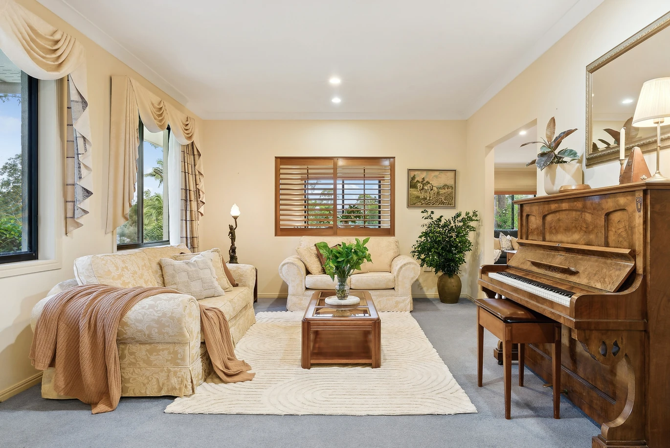 The home offers flexibility and space for the entire family, with a separate formal living area providing a peaceful retreat or elegant entertaining option. The master suite is a true haven, complete with air-conditioning, a walk-in wardrobe and a private ensuite. Three additional bedrooms are well-proportioned and filled with light, supported by a thoughtfully designed main bathroom with a separate toilet and wash area for added everyday convenience.