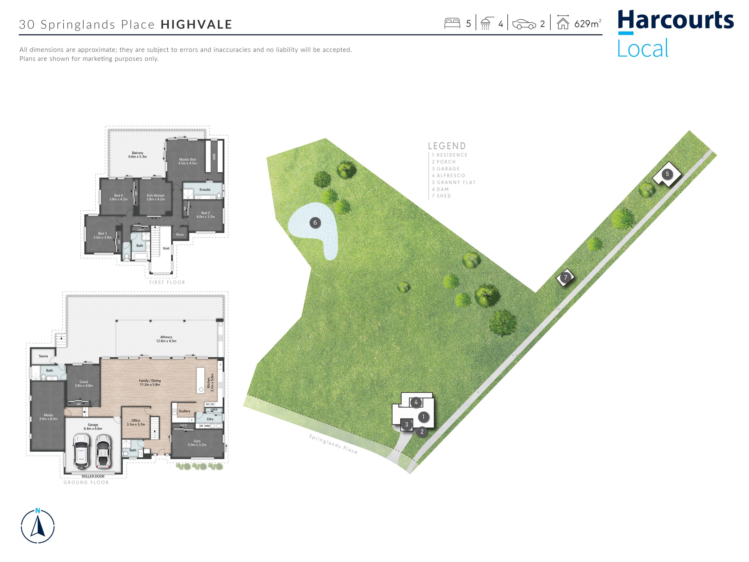 - Five generous bedrooms and four bathrooms, including a guest retreat, - gym and sauna