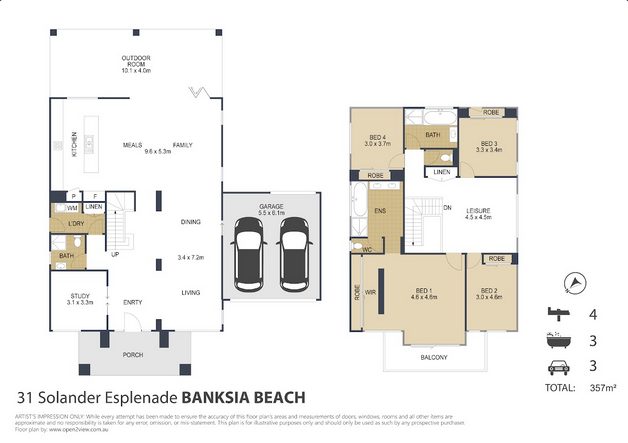 • Master Retreat a king size bedroom with sitting room, 2 way walk-in robe, resort quality ensuite and private balcony with water views and magnificent sunsets