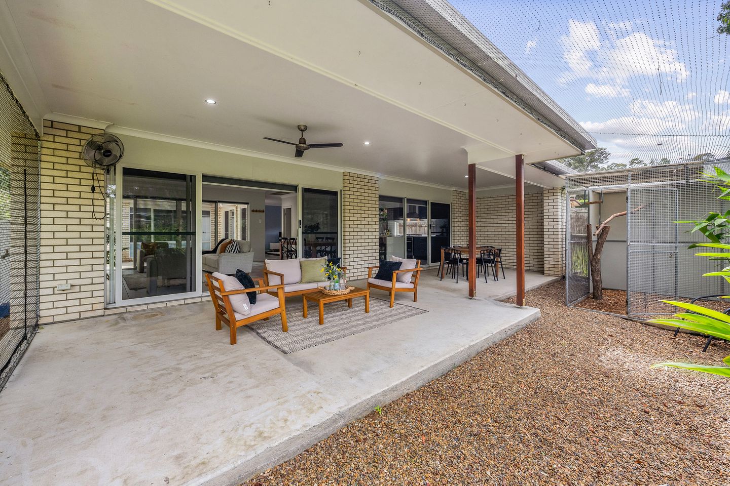The home offers two separate outdoor living spaces, providing flexibility for all seasons. A covered alfresco runs the full width of the rear of the home, ideal for outdoor dining, entertaining, and family barbecues while overlooking the expansive backyard. An open-air courtyard enhances natural light and airflow to the living areas and master bedroom, keeping the home bright and comfortable year-round.
