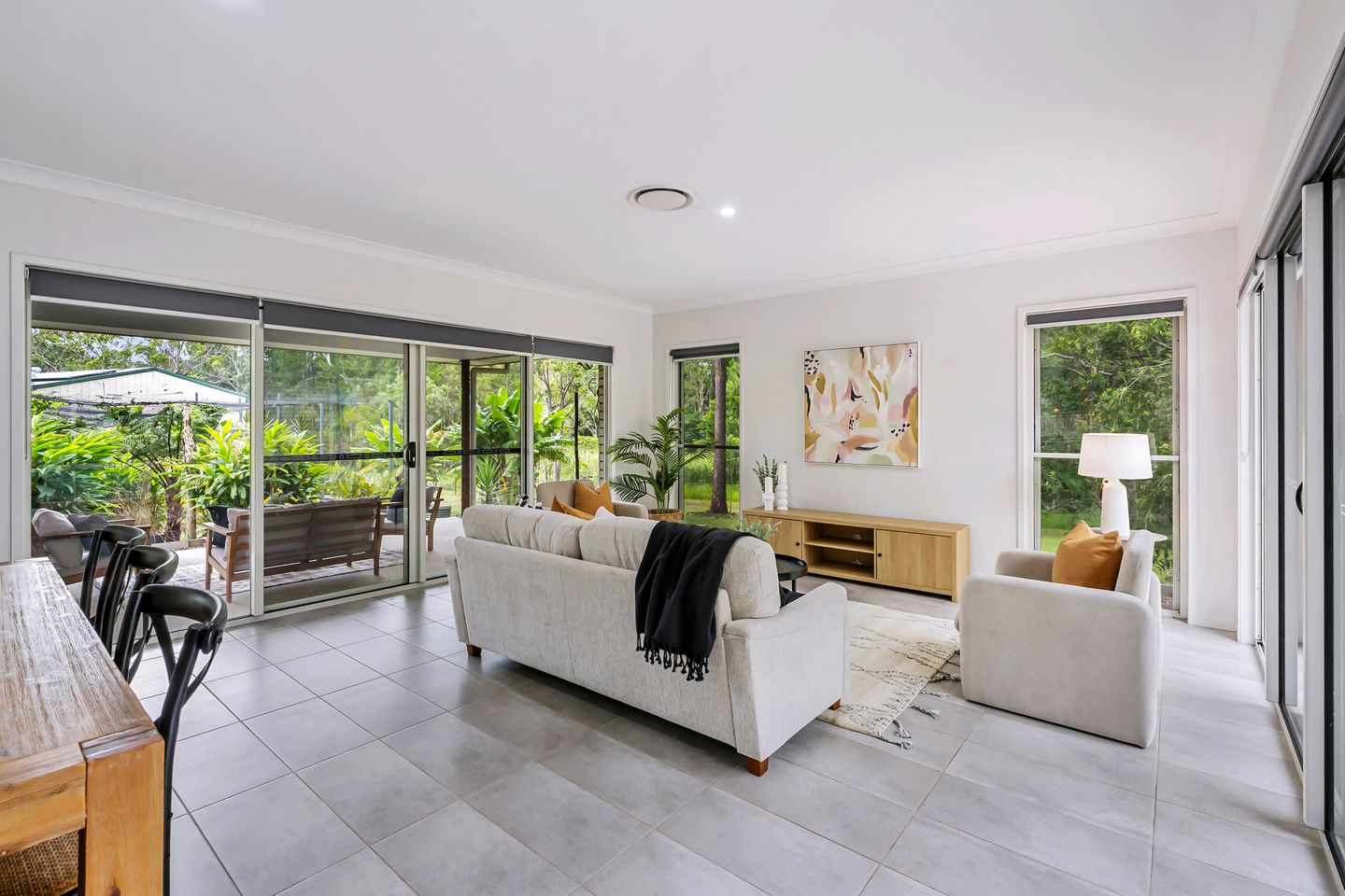 Accommodation is well zoned for families, with the children's bedrooms and main bathroom positioned toward the front of the home, while the master suite is privately located and enjoys a peaceful outlook over the courtyard, creating a calm retreat away from the main living areas.