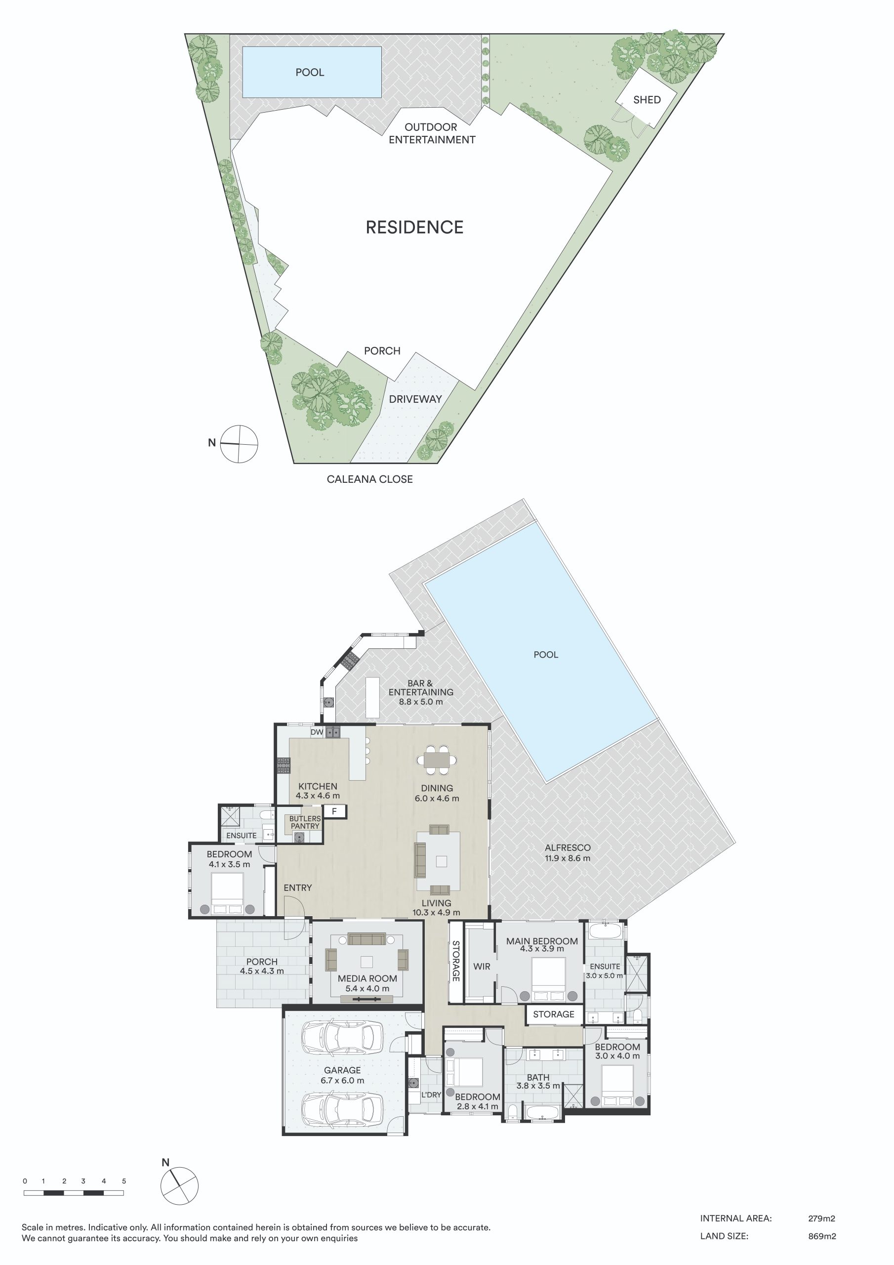 - Master suite with large walk-in robe and ensuite with dual vanities, deep bath and separate toilet