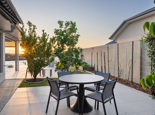 • Manicured, low-maintenance gardens with fruit trees and vegetables