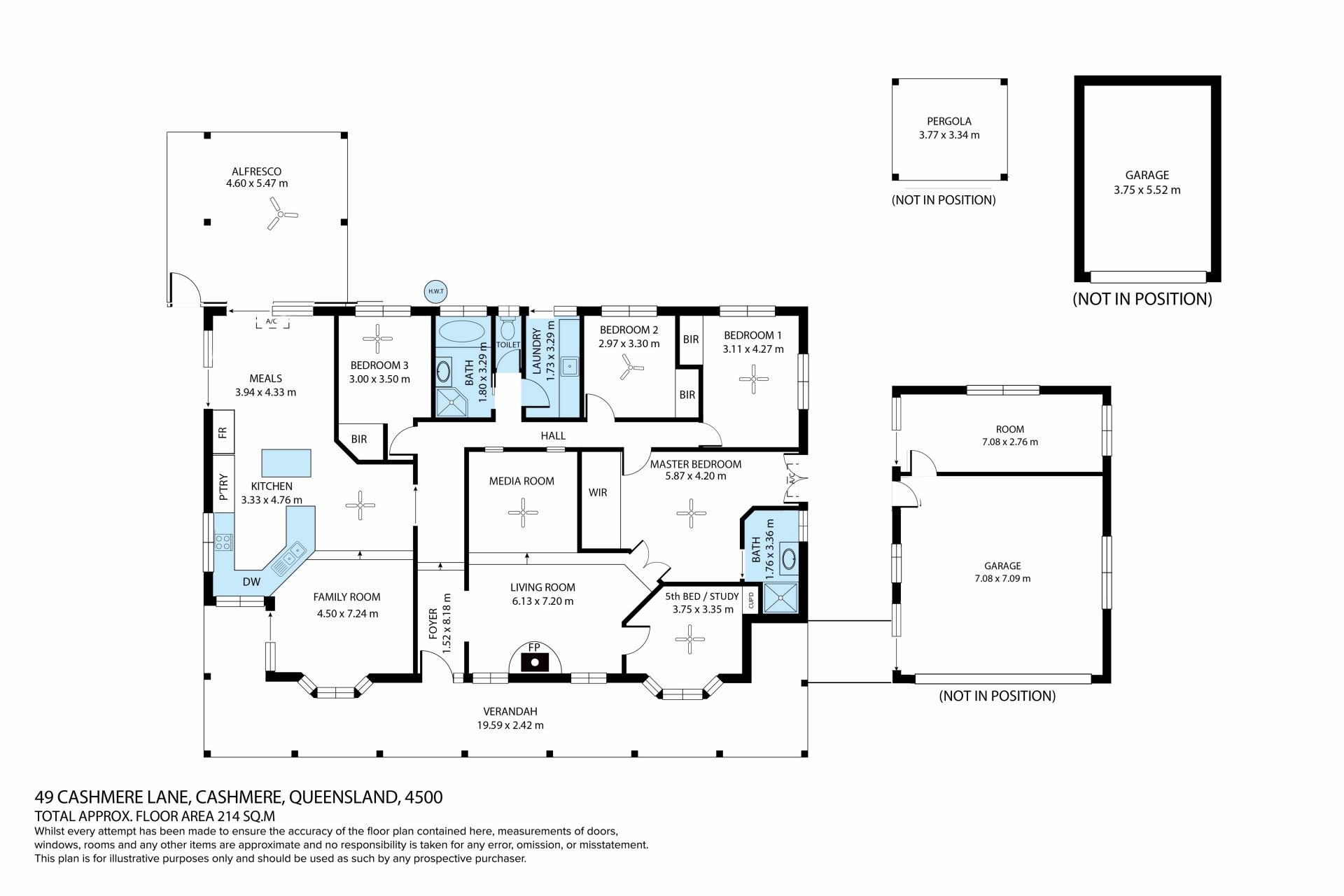 Built in 2000 and designed with family living in mind, the home features five bedrooms (or four plus study), all with built-ins. The master suite is privately positioned and complete with ensuite and double vanity with twin sinks.