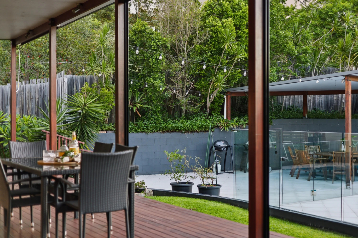 • Sparkling in-ground pool with glass fencing and poolside gazebo