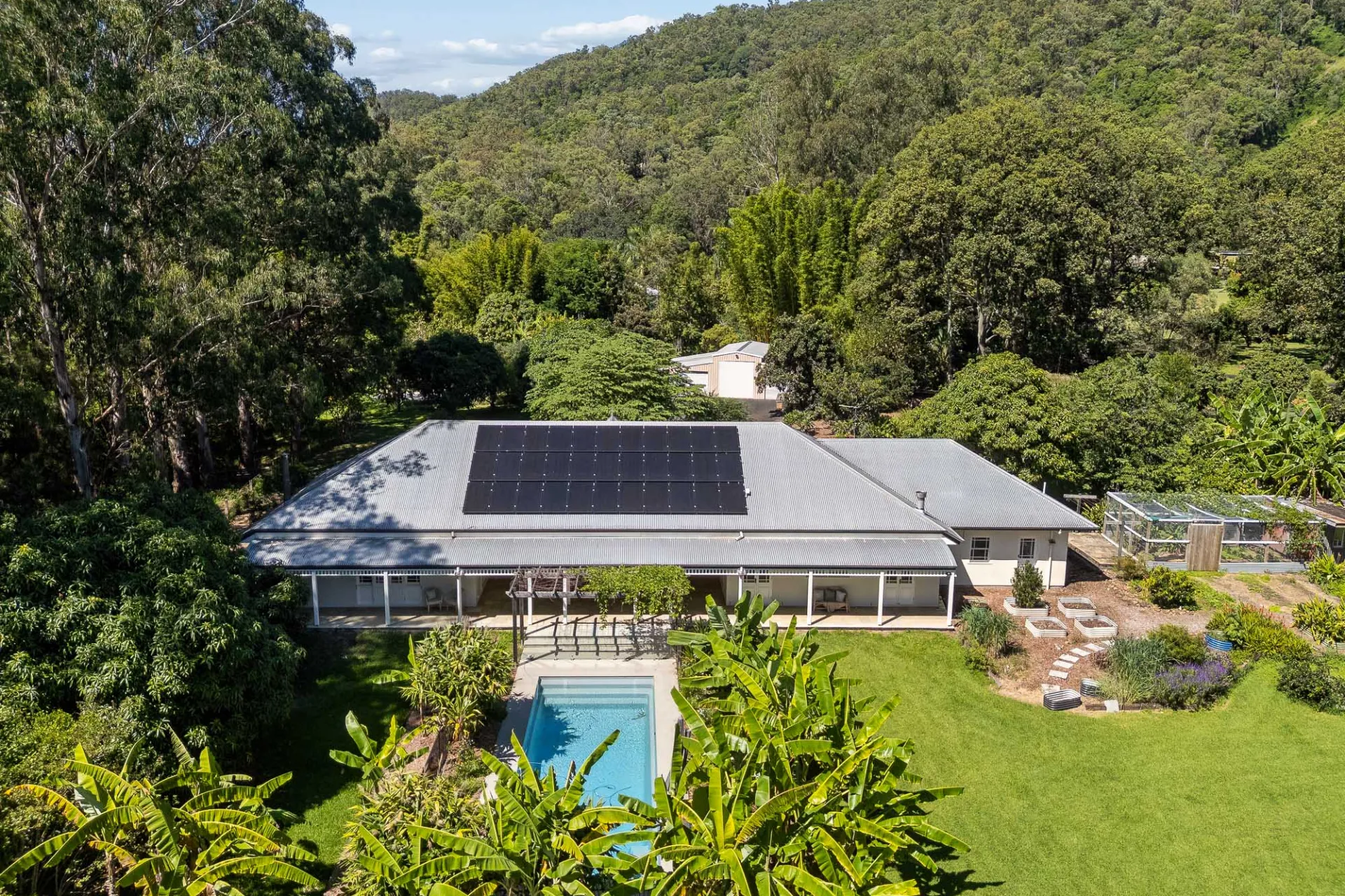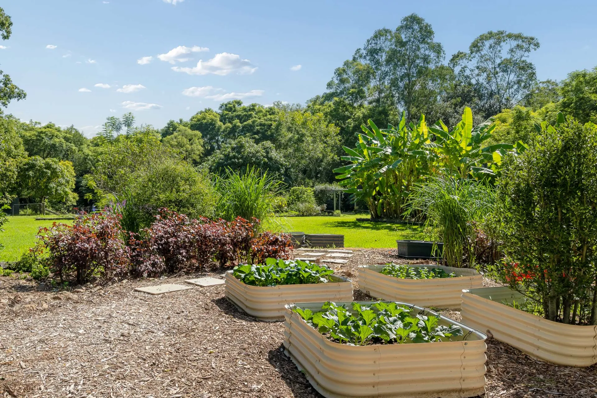 Outdoors, the property is both highly usable and impressively productive. A well-established orchard features over 50 mango trees alongside 23+ varieties of fruit trees, complemented by a thriving kitchen garden with herbs, flowers and vegetables. Water security is well established with bore supply, rainwater tanks, irrigation and a permanent dam.