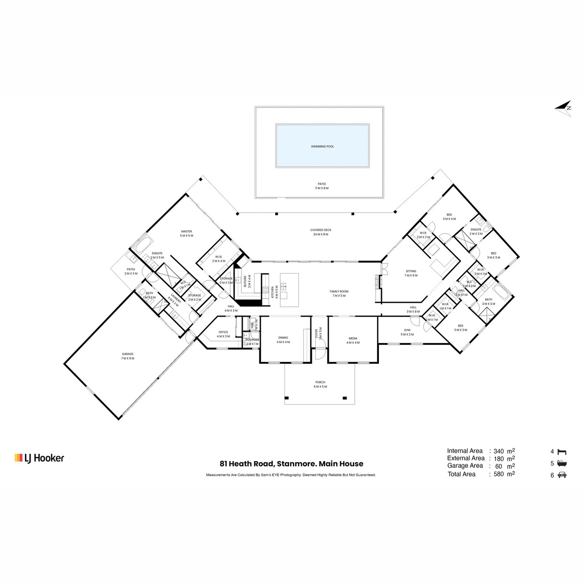 The primary residence showcases generous proportions and thoughtful design throughout, with multiple living zones, soaring 2.7-metre ceilings, and seamless indoor-outdoor flow to a large covered entertaining area overlooking the saltwater swimming pool. A two-way fireplace anchors the main living spaces, while ducted air-conditioning, an internal speaker system, and high-end security features ensure comfort, convenience, and peace of mind year-round. The kitchen is a true centrepiece, featuring an induction cooktop, dual ovens including steam, and a fully equipped butler's pantry, perfectly suited to both family living and large-scale entertaining - altogether creating one of the most desirable homesteads in the region.