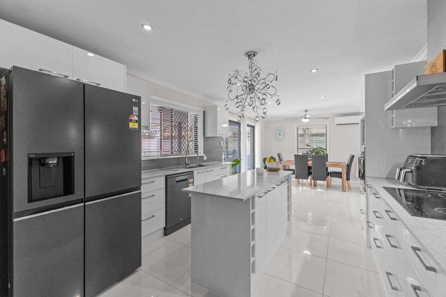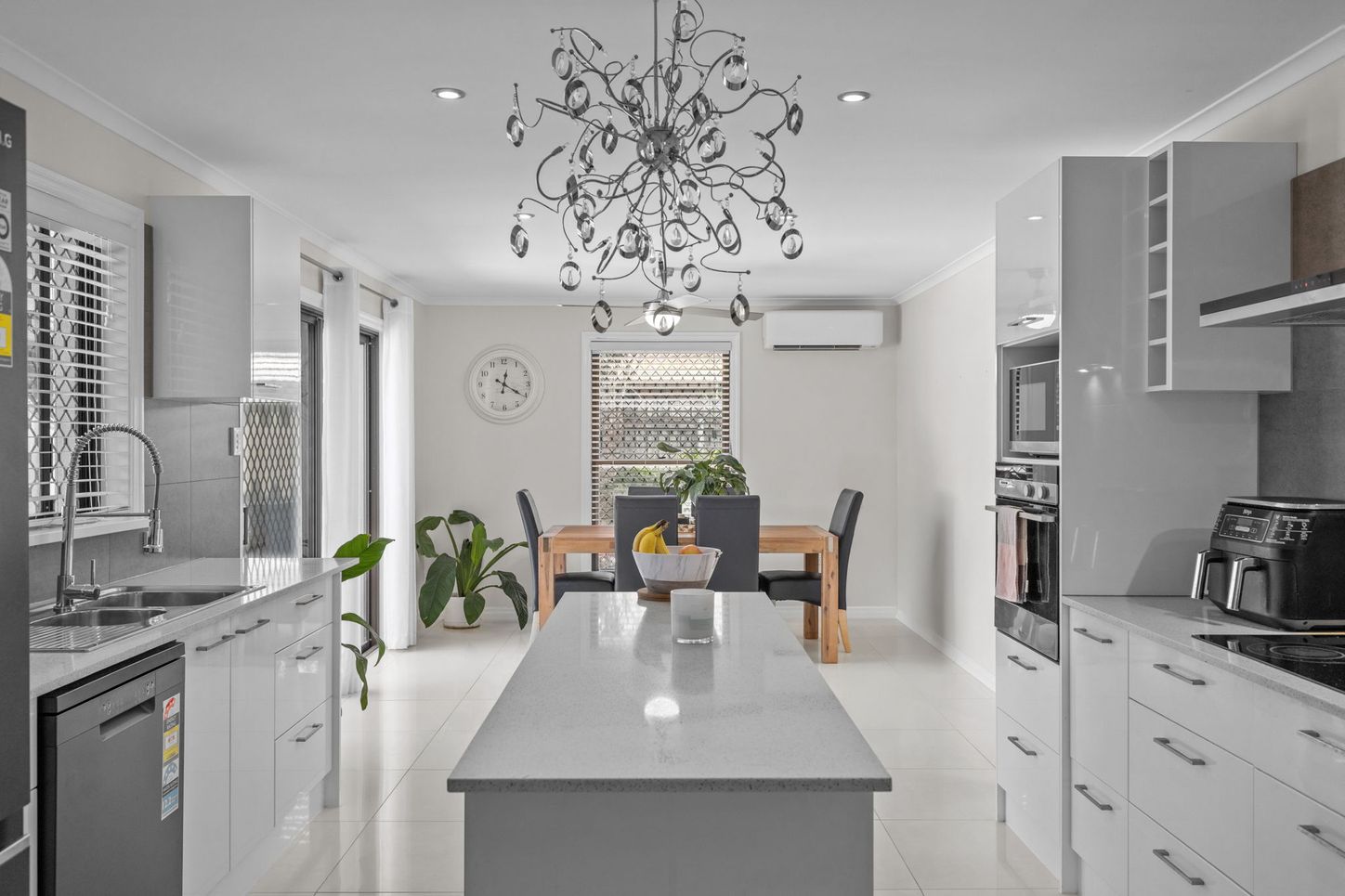 At the heart of the home is a stunning gourmet kitchen featuring expansive bench space, quality appliances and a statement chandelier over the island bench. Flowing tiled living and dining zones connect effortlessly to the outdoor entertaining areas, creating the perfect environment for everyday living and unforgettable gatherings.