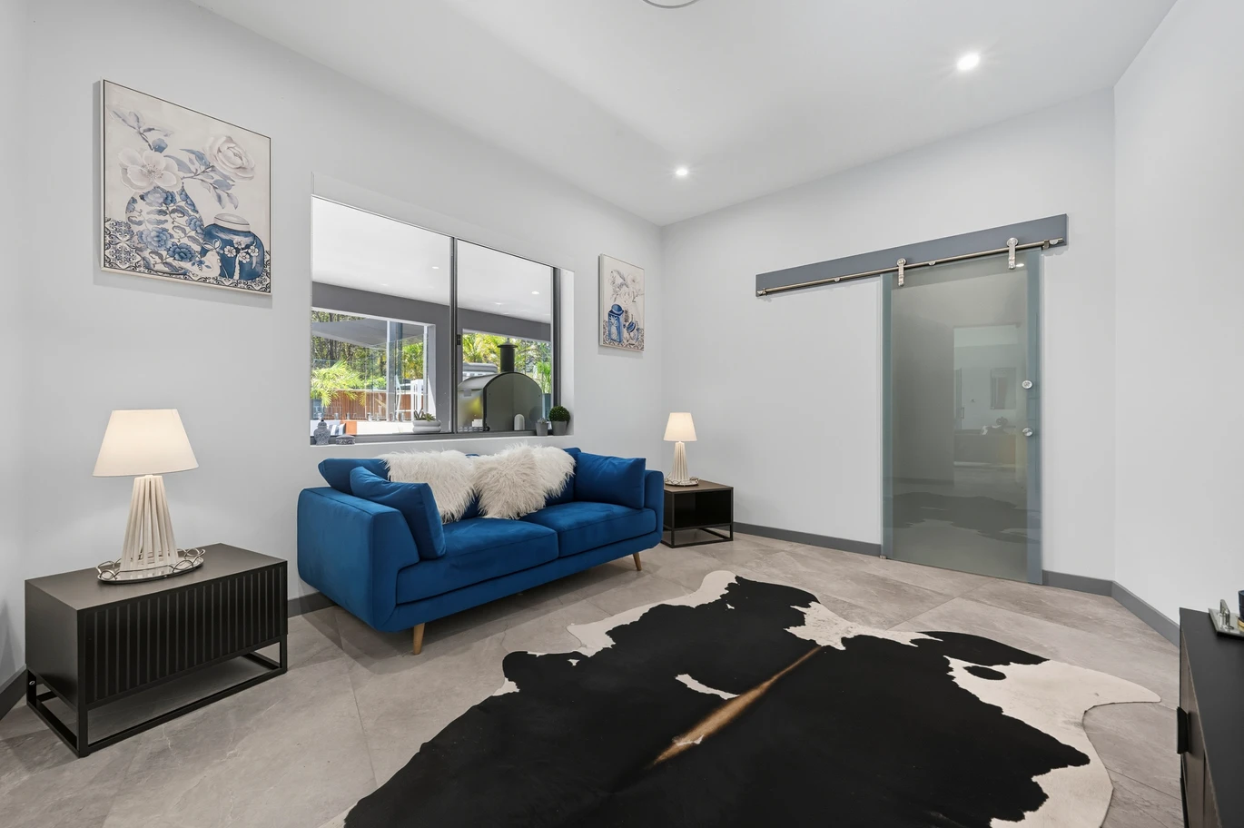 Downstairs, the home offers a fully self-contained retreat with both internal and external access through commercial-grade entrance doors. Featuring a modern kitchen, spacious living and dining areas, a private bathroom, laundry and generous 5th bedroom accommodation beneath impressively high ceilings, this versatile space is perfect for teenagers seeking independence, grandparents wanting comfort, or guests enjoying privacy.