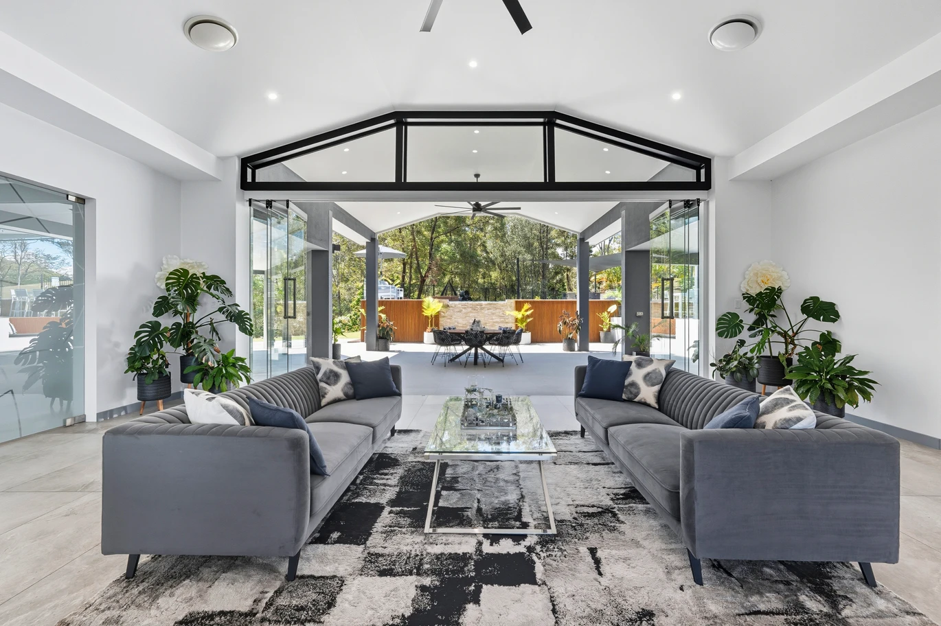 Integration from the inside to the outside has been carefully considered. A resort-style infinity edge pool featuring a cascading waterfall over a stack stone wall and finished in mosaic tiles, is surrounded by relaxing poolside zones, including the outdoor kitchen area allowing you to entertain in style, easy care low-maintenance gardens, established fruit trees, impressive fire pit and natural bushland. Integrated music, smart Google voice-controlled lighting, and indoor-outdoor flow elevate every gathering to a luxury experience. Wide open spaces invite lifestyle pursuits, from hobby farming to quiet reflection, all while being embraced by spectacular mountain backdrops.